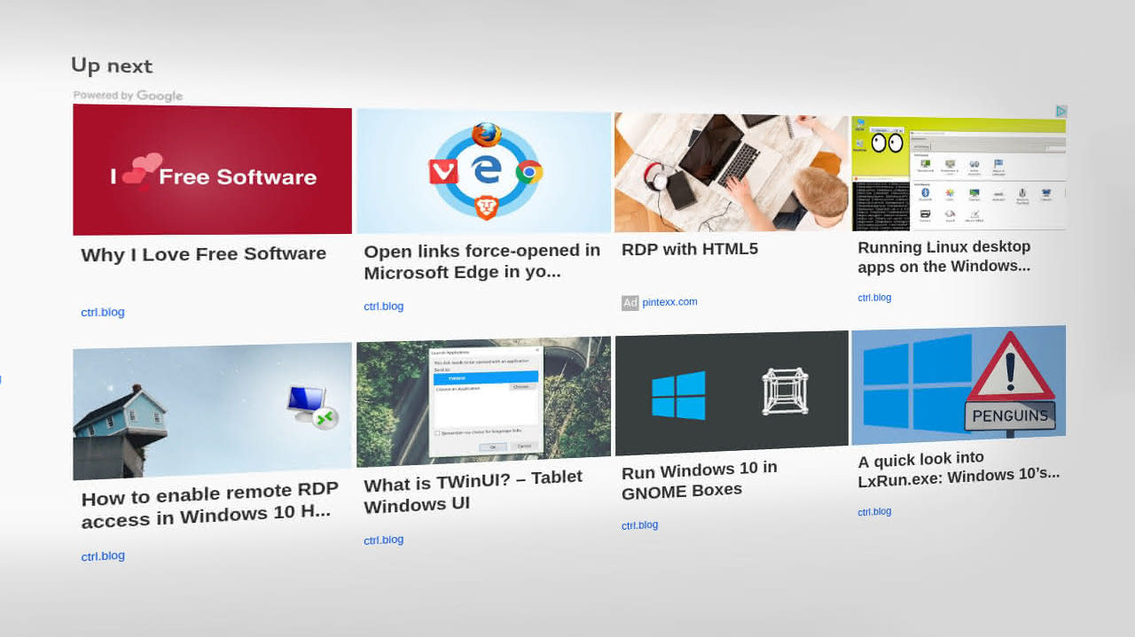 The majority of readers will instead see recommendations from a system I wrote myself. As Iâve been able to tune this system for the content that are on my site, it has proven very effective with higher click-through rates than anything I get with a third-party service like Matched content by AdSense.