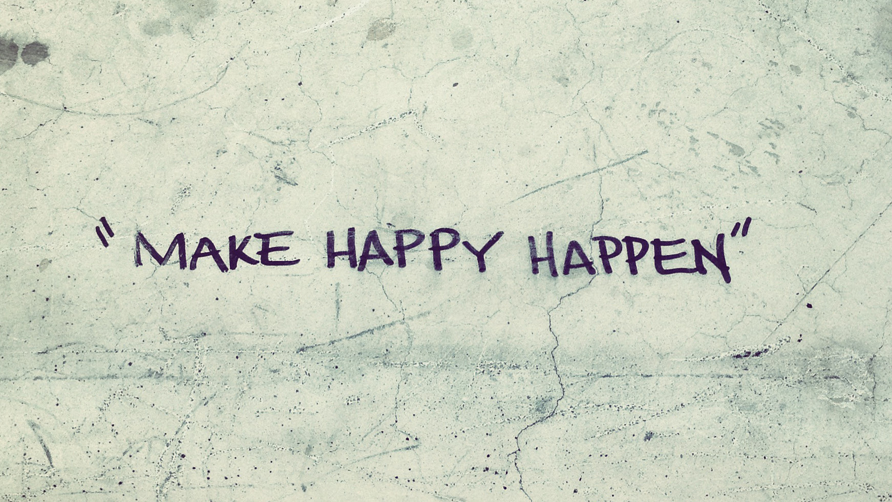 “Make Happy Happen” written on cracked and worn concrete. 🅭