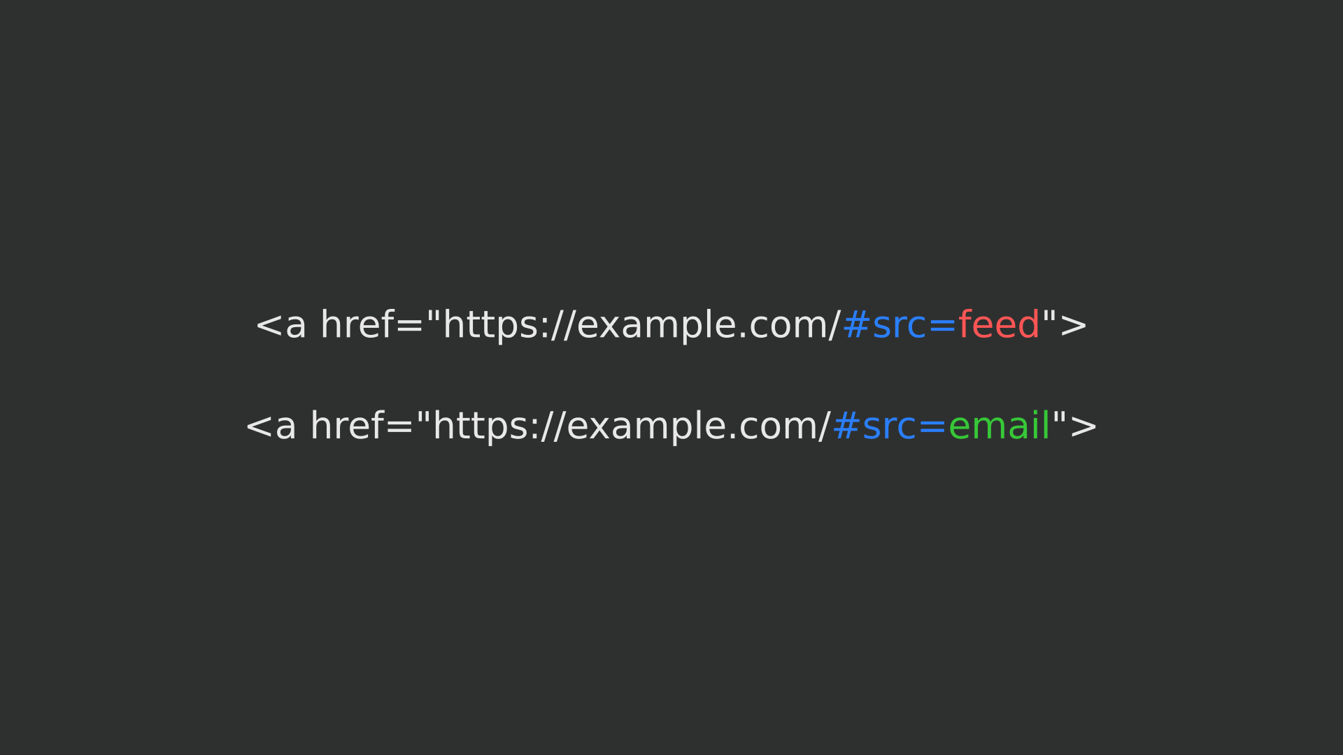 I’ve also added tracking parameters to the feed to differentiate between readers coming to the site from some primary external sources like the email newsletter, Twitter account, feed readers, and so on. This is the same task my old WordPress Feed to Google Analytics integration plugin handled. (I don’t track individual subscribers or clients, only what channel is used to access the site.)