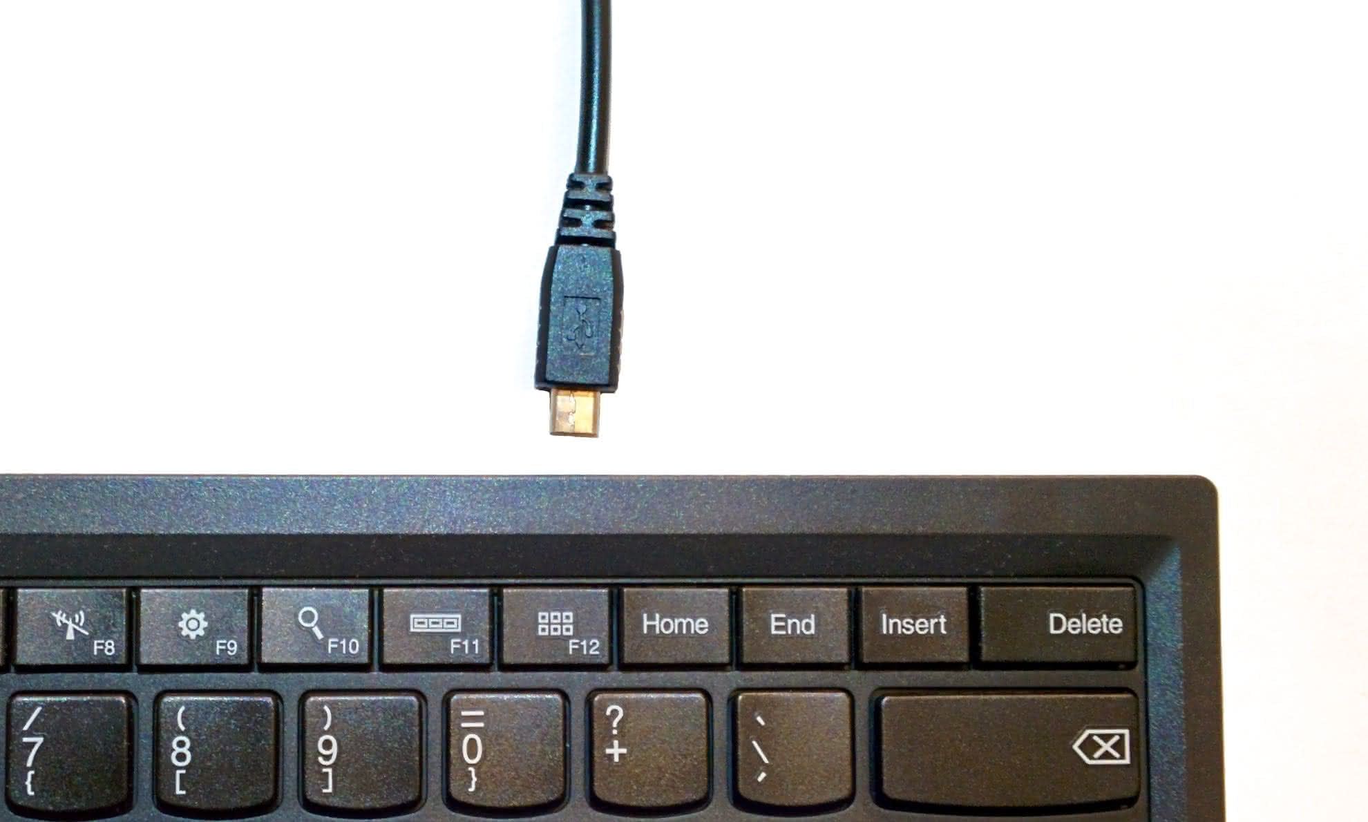 Lenovo has found a new solution. You still plug the USB cable into the back of the computer but the other end of the cable is a MicroUSB connector that you plug into the keyboard itself.