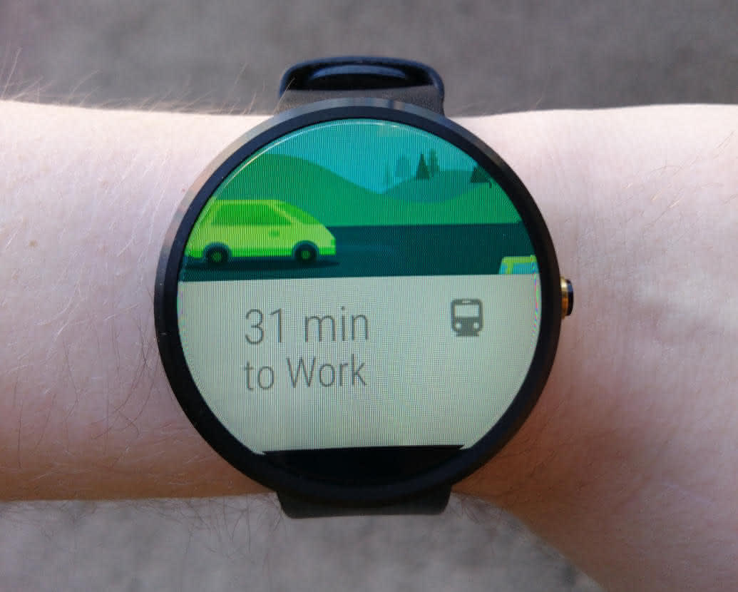 This time both the phone and watch stayed silent. After the doctor appointment when I was waiting on the bus outside his office, Google Now on the phone showed me the transit time for that bus stop and for the route I needed to take home. When I got home afterward, however, the watch sprang in to action and gave me three notifications with three different public transport routes for getting to my doctor’s office. Not very useful as I’m not going back there for another year. In an similar episode, Google would send me traffic updates about travel time to my former-workplace for three weeks after leaving the company.