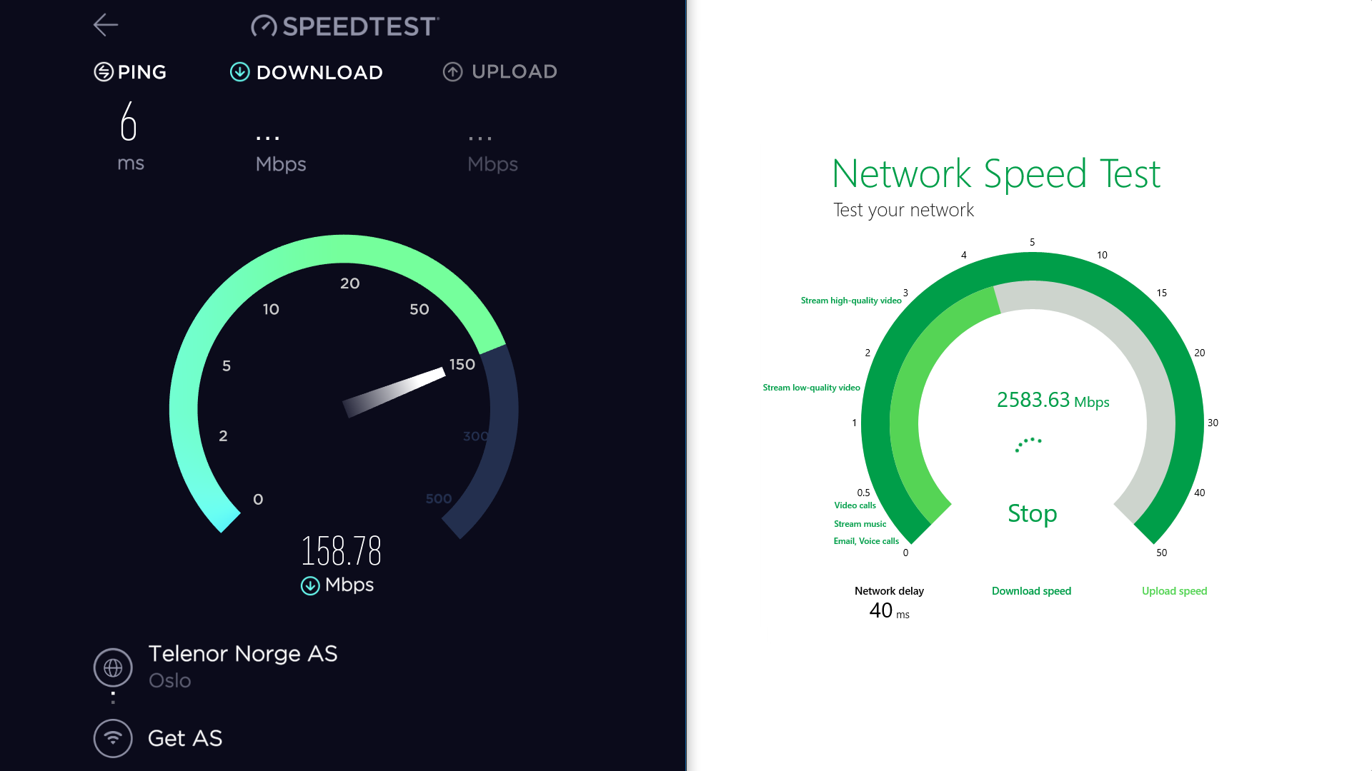 Which is the better network speed testing app for Windows: Microsoft Network Speed Test or Ookla Speedtest? One wins by default as the other is entirely incompetent and created without much knowledge of decades old technologies!